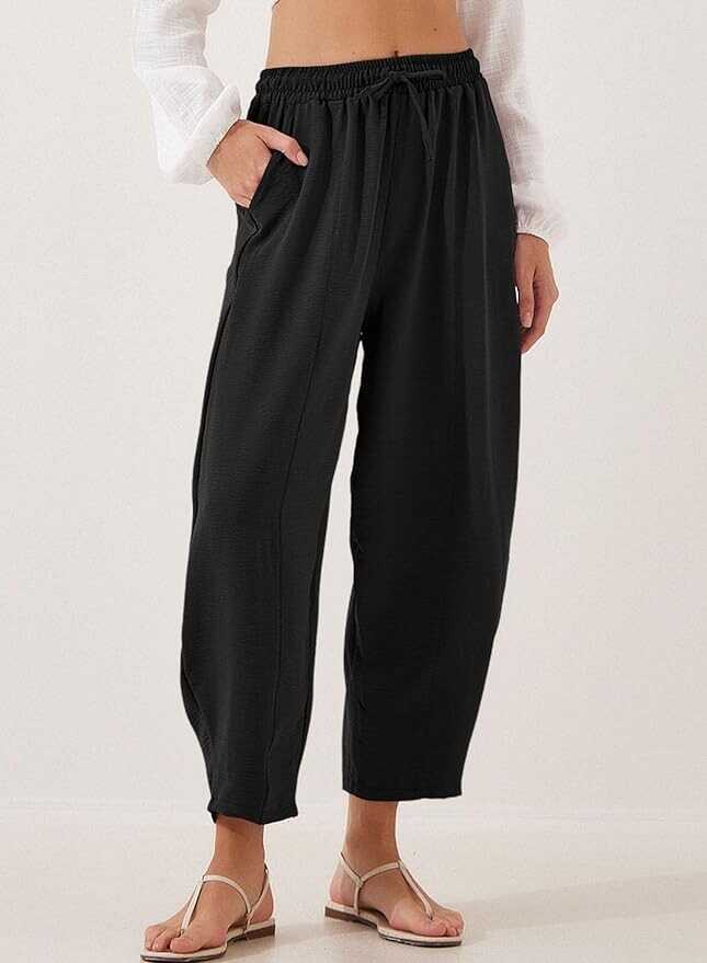 EVALESS Women's Summer High Waisted Baggy Pants Casual Ankle Length Trouser Slacks with Pockets