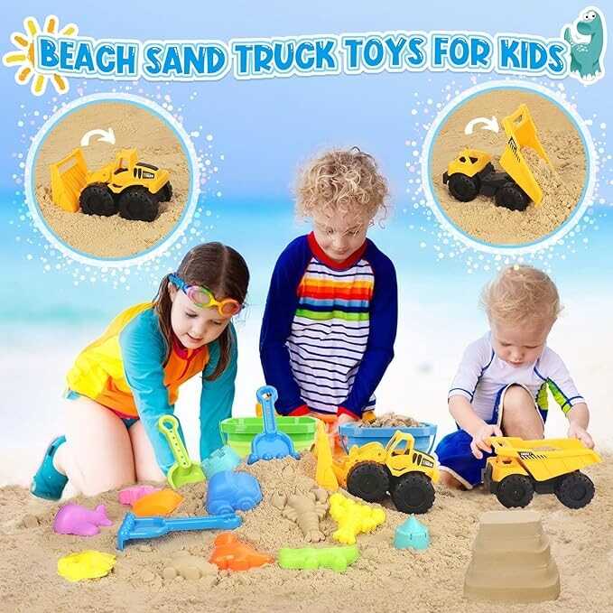 • ?【CONSTRUCTION VEHICLE TOYS & VARIOUS SAND MOLDS】The sand toys are not only equipped with beach toy essentials such as dump truck and bulldozers, but also have various types of colourful sand molds such as sea creatures, animals, dinosaurs, transportation and more. Help your child to dig in the sand and build sand castles for summer beach fun!