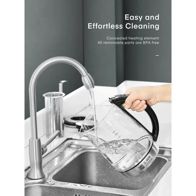 Fast Boiling & Removable Infuser: 1.7-liter borosilicate glass electric kettle has 1200 watts for fast heat up and a concealed heating element to prevent mineral buildup. A removable tea infuser allows you to place tea bags or loose tea leaves inside to infuse the water. Remove the filter basket once the required brewing time for the type of tea you are making is over to avoid over-infusing.