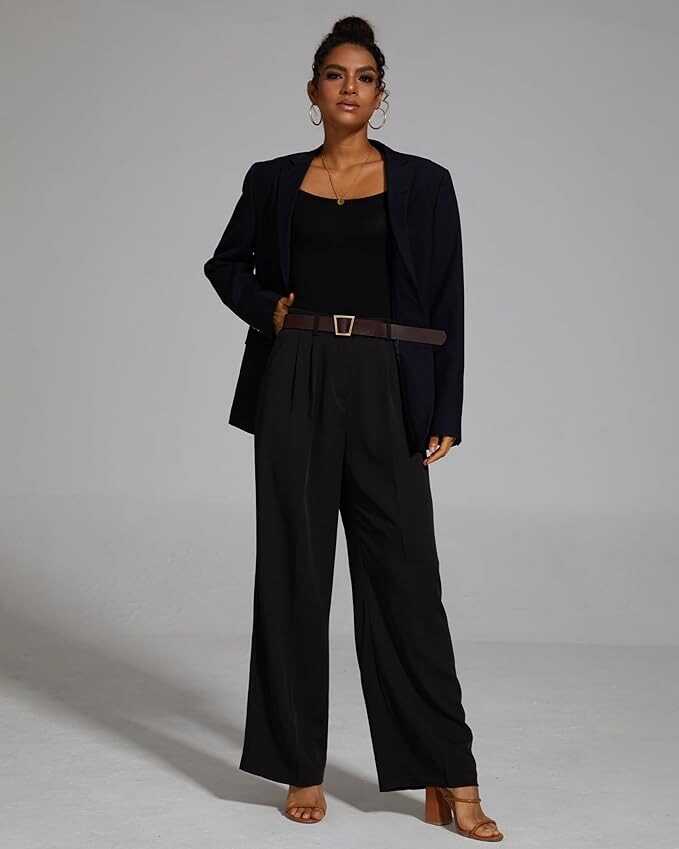 FUNYYZO Women's Wide Leg Pants High Elastic Waisted in The Back Business Work Trousers Long Straight Suit Pants