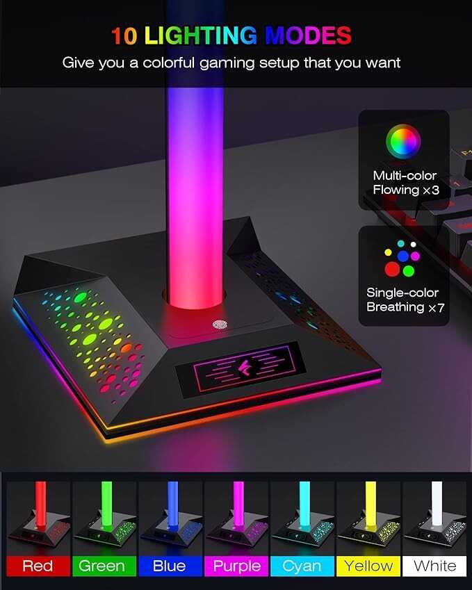 • 【Touch-control Design & Memory Function】Gaming accessories headset stand has sensitive and convenient touch buttons, you can easily select the light mode and off mode; it has a memory function, so it can remember the color pattern after turning off and does not need to be reset when turning on again