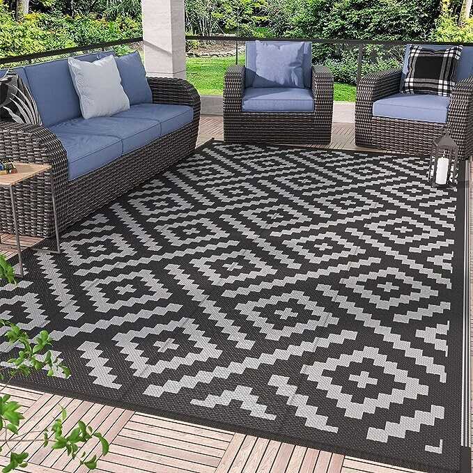 GENIMO Outdoor Rug for Patio Clearance,5'x8' Waterproof Mat,Reversible Plastic Camping Rugs,Rv,Porch,Deck,Camper,Balcony,Backyard,Black & Gray