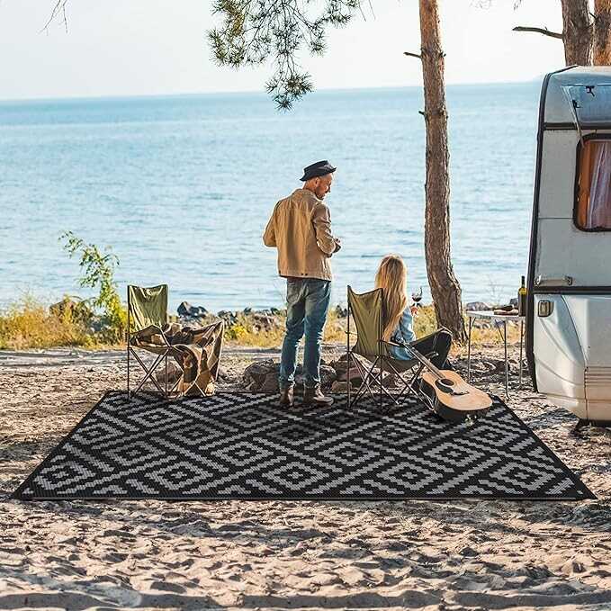 • 【UV & FADE RESISTANT】Professional UV coating can resist high temperature, fading and other sun damage, suitable for long-lasting use even in stormy/windy/snowy weather. We suggest that you don't keep rv rugs in direct sunlight for a long time, using it in the shade. Note: colors may be different from image because of the environment or lights.