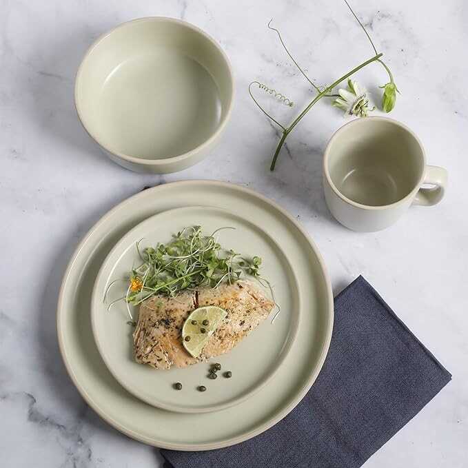 Gibson Home Zuma 16 Piece Round Kitchen Dinnerware Set, Dishes, Plates, Bowls, Mugs, Service for 4, Matte Stoneware, Cream