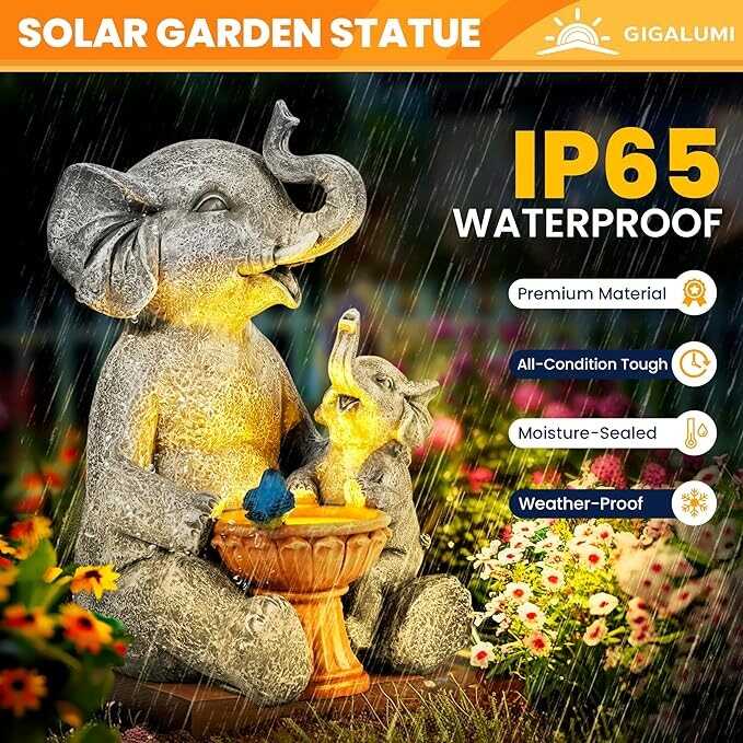 • [Garden Decor Elephant Statue]: Embrace familial warmth with our Solar Elephant Statue, an exquisite addition to your garden, patio, lawn, or yard decoration outdoor. Celebrate the joyous bond between mother and baby elephant with this decor piece that elevates any outdoor scenario.