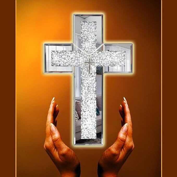 • Stunning Design: Our exquisite cross wall decor features a diamond-embedded glass mirror in the middle, adding a touch of elegance and sophistication to any space.