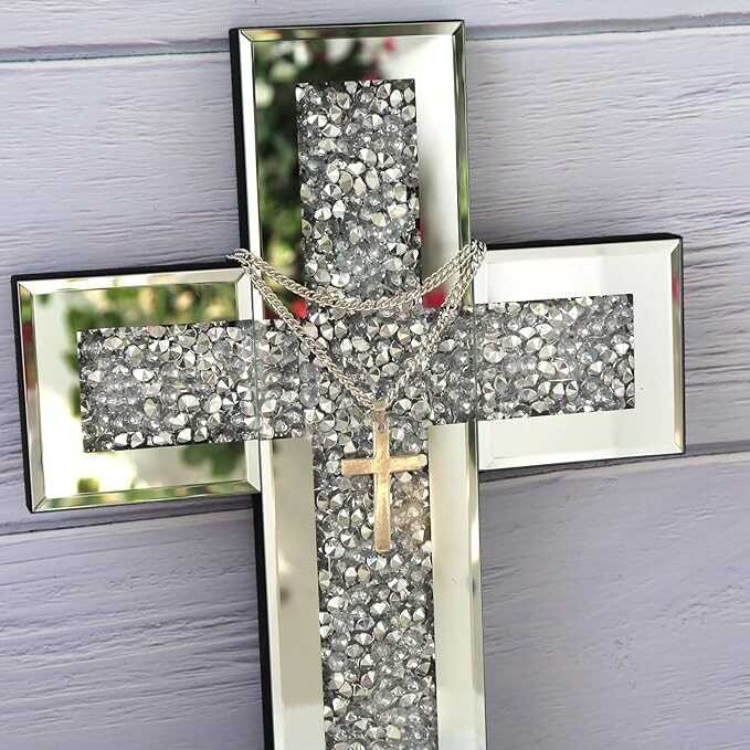• Premium Materials: Crafted with high-quality glass mirror and encrusted with diamonds, this cross decoration showcases exceptional craftsmanship and solid construction.