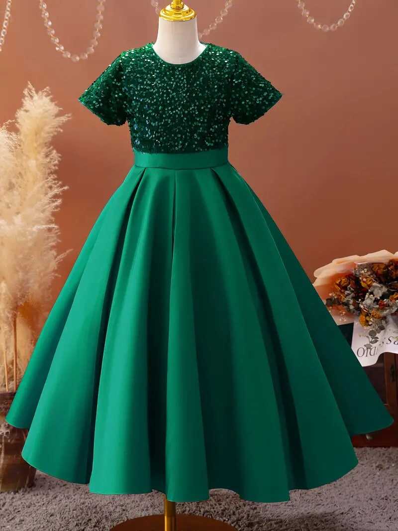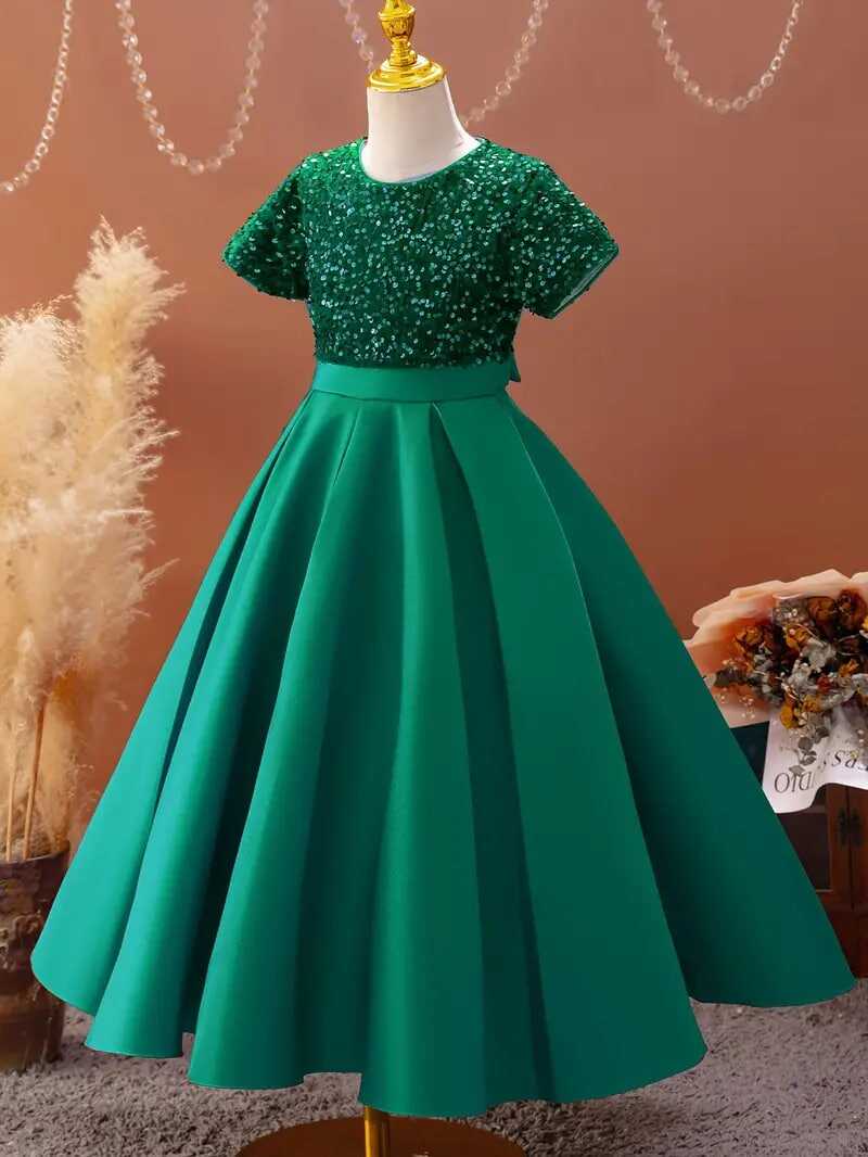 Girls Sequin Sleeveless Dress Crew Neck Dresses For Spring Summer Gift Party Christmas 4-14y