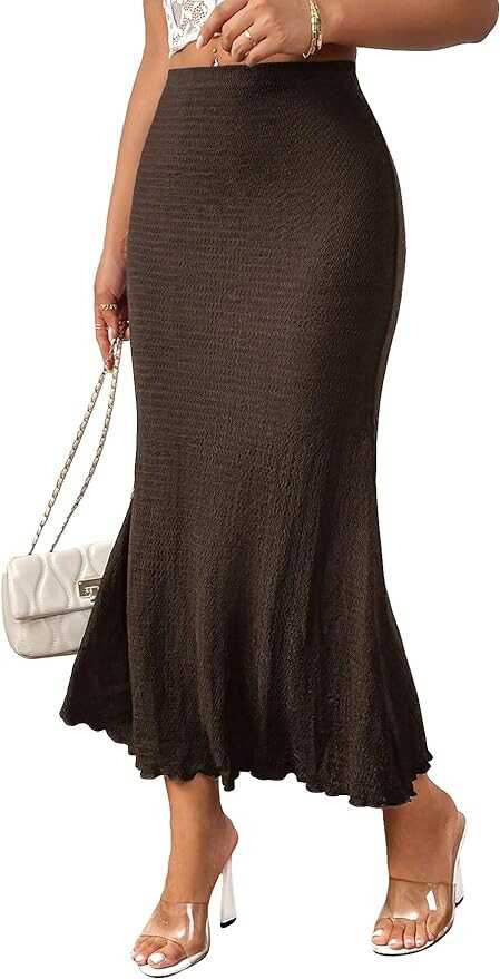 GORGLITTER Women's Solid Pencil Skirt Lettuce Trim Bodycon Long Skirts Dress