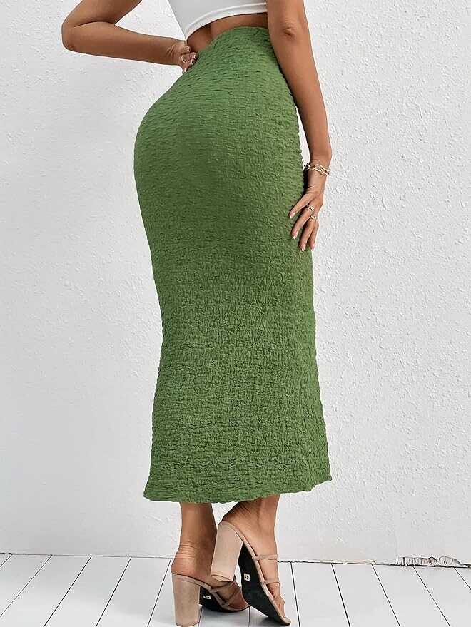 GORGLITTER Women's Texture Bodycon Maxi Skirt High Waist Pencil Long Skirts