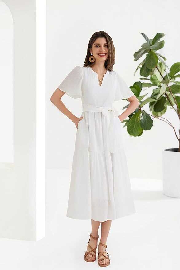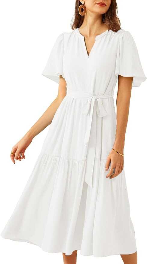 • FEATURES:Womens Dresses / Flowy Swing Pleated Hem /Short Sleeve Boho Dresses/Ruffled Hem Flowy Dress/High Waist A-Line Dress/V Neck Swing Dresses/Floral Print Bohemian Dress/Maxi Dresses With Belt/Summer Dresses For Women/Tiered Maxi Dress For Women/Fit And Flare Dress For Women/Feminine line / V Neck / Simple Solid Color / Ruffle Cap Sleeveless Sleeve Design /With An Extra Belt Of The Same Color/ Classic A-Line Silhouette / Romantic Bohemian Style / Comfortable Midi Length