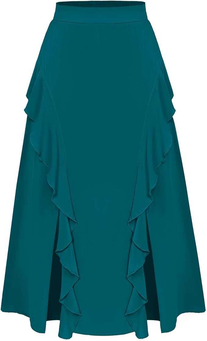 • 【Features】This women's summer midi skirt is featured with elastic high waisted, which can highlight your figure more slimmer. Ruffle trim, 2 side split, below knee length, flowy A-line midi skirt for women.