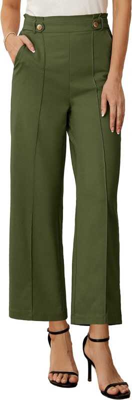 • DRESSY DESIGN: 2024 Cropped wide leg slacks are designed with high rise and elastic back waistline, which can contours your curves better, functional pockets are ideal for keeping your cards, keys or phone. Flat front, non-functional button, hidden zip at left side, with open side-entry pockets and belt loops, which is professional for work, interview and any other formal occasions, it's also comfortable for daily activities, like yoga, golf, lounge, date, etc.