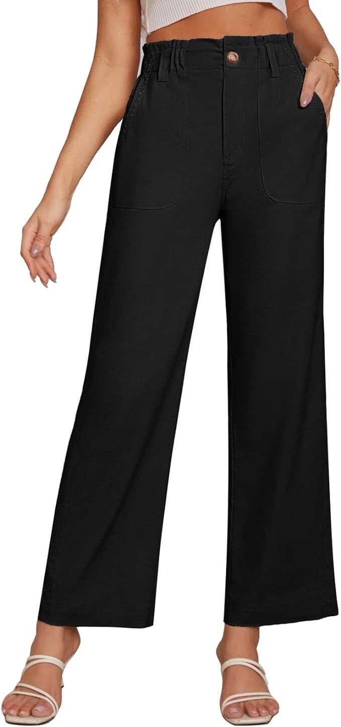 GRACE KARIN Women's Wide Leg Pants Dress Pants with Pockets Elasticized Back Waist Lounge Pants