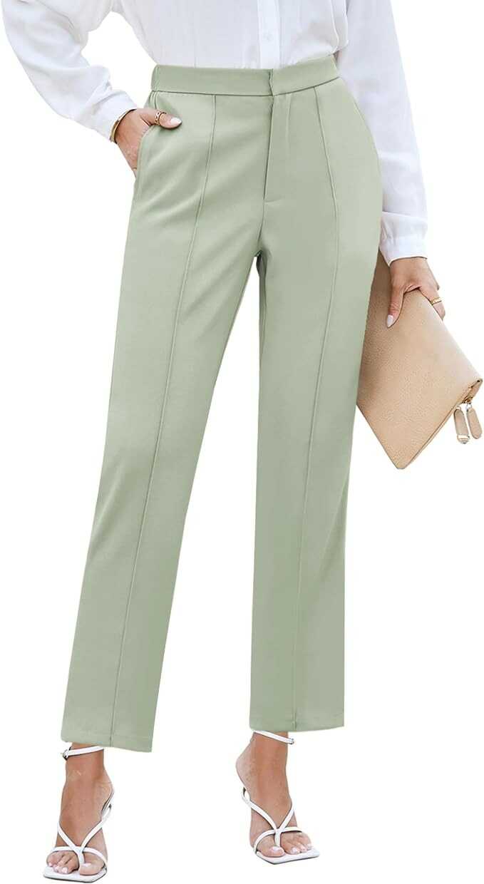 GRAPENT Dress Pants Women High Waisted Work Pants Dressy Casual Straight Leg Elastic Waist Cropped Trousers Ankle Slacks