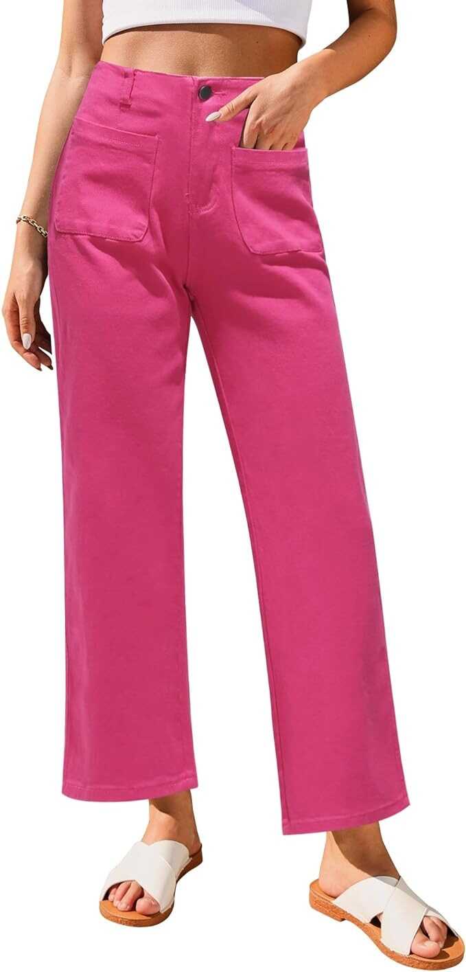 GRAPENT Wide Leg Jeans for Women High Waisted Straight Leg Stretchy Cropped Denim Pants with Pockets Jean Trousers