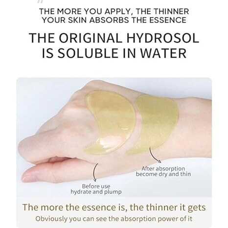 • ? Extra Usage Tip: You can also apply the Hydrogel Patches at the neck, around the mouth & forehead as an anti-wrinkle and dryness solution since they will adhere to any part you apply them to allow the skin to absorb all the ingredients targeting the wish area and obtaining the same benefits listed above.