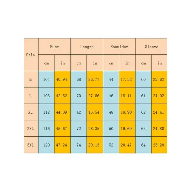 XXXL Length: 29.92 Bust: 47.24 Sleeve: 25.20 Shoulder: 20.47