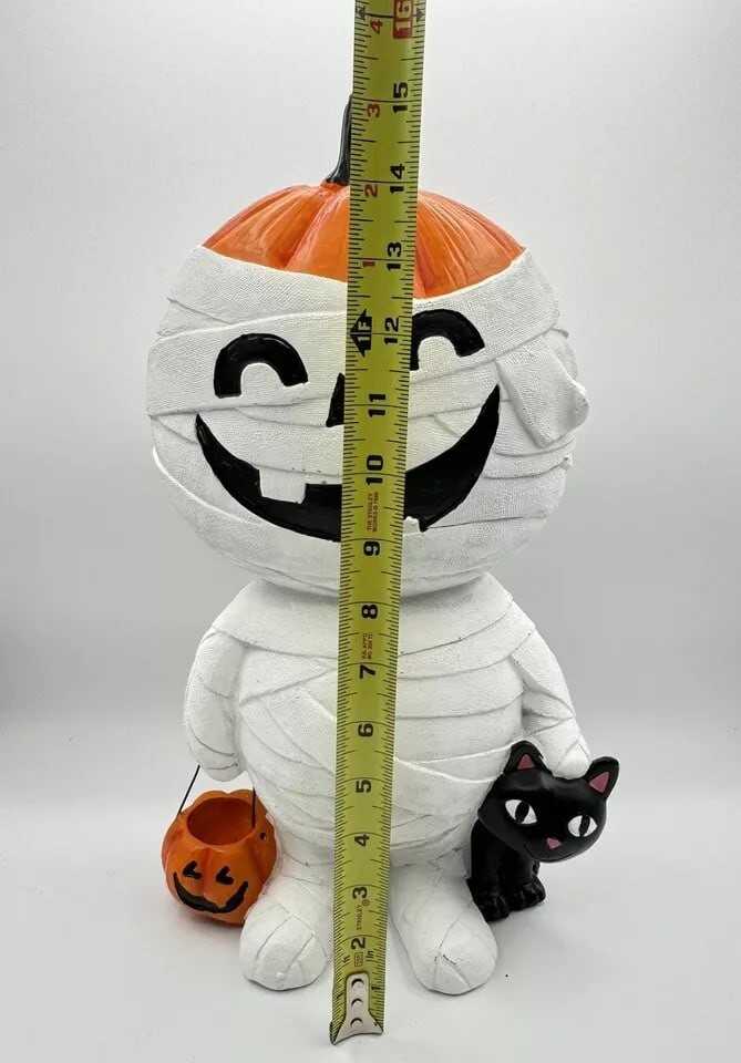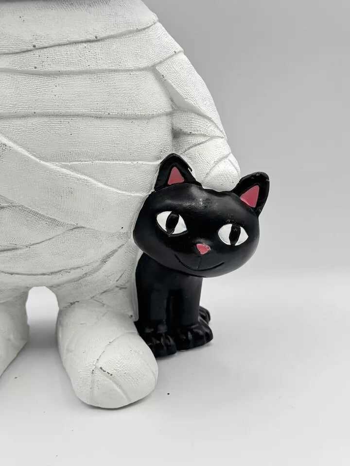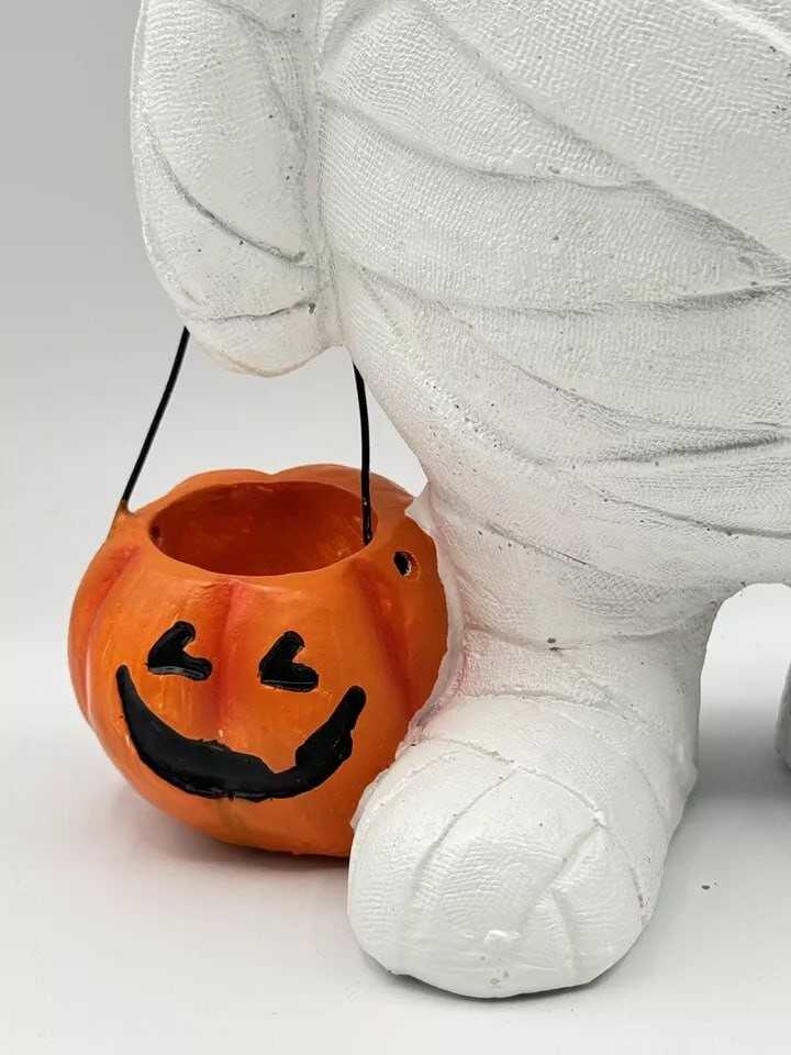 Halloween 2024 Mummy Black Cat Trick or Treating Pumpkin Bucket Resin Figurine