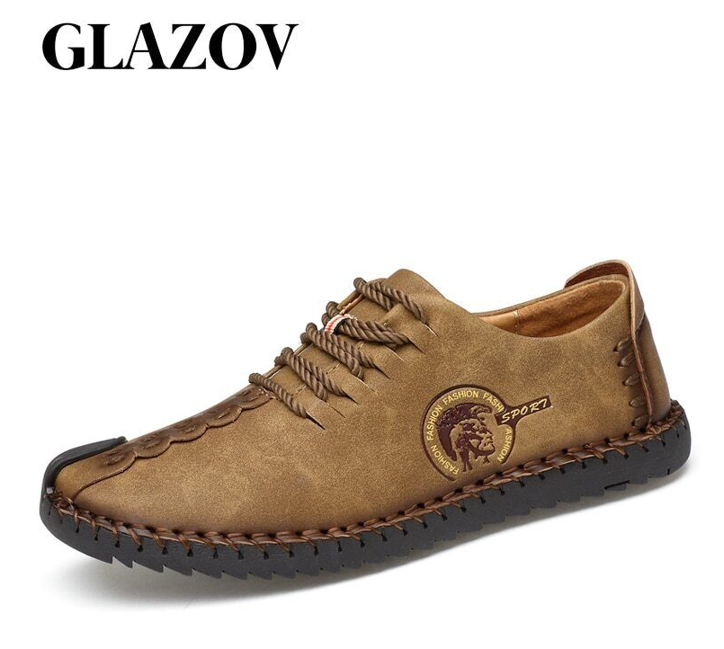 Handmade Men's Casual Shoes Comfortable Loafers Flat Lace-up Moccasins Sneakers