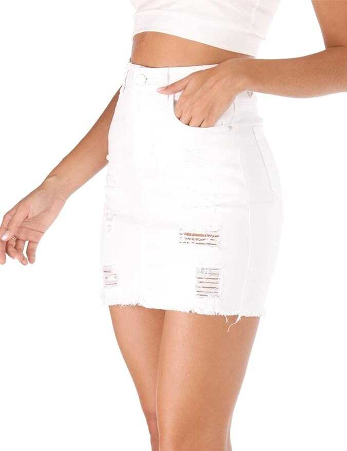• Features: Distressed mini jeans skirt, slim fit, above knee length.Classic bodycon pencil skirt, sexy style, it is your must-have item in summer.White is a little see through,Attention!