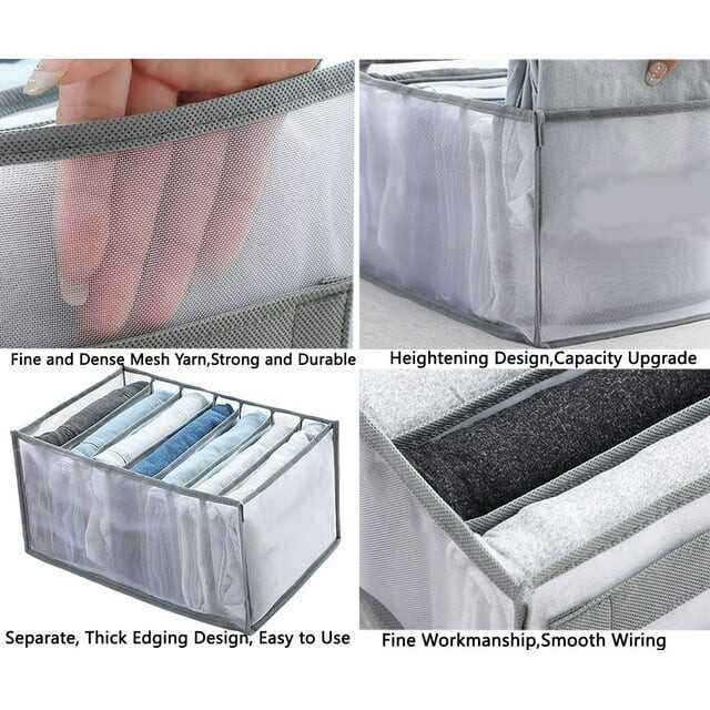 【Upgrade Material, Thicken The Edge】Upgrade And Thicken The Material. Bigger, Stronger And More Convenient. In order to better meet the needs of users, we have improved the traditional Wardrobe Clothes Organizer for Jeans. We increased the material thickness to 23 filaments mesh nylon (Wardrobe Clothes Organizer materials on the market are generally 16.5-18 filaments). The Wardrobe Clothes Organizer edge is wrapped in a thick oxford cloth that keeps its shape and won't collapse or crack.