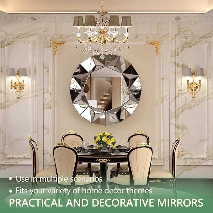 • ?【EXQUISITE WORKMANSHIP】The decorative mirror is designed with customized small triangular silver mirror around the rim. Each edge is carefully beveled to not only ensure safety, but also enhance the beauty of the mirror. It is sleek, modern and clean in the light.