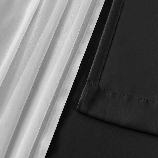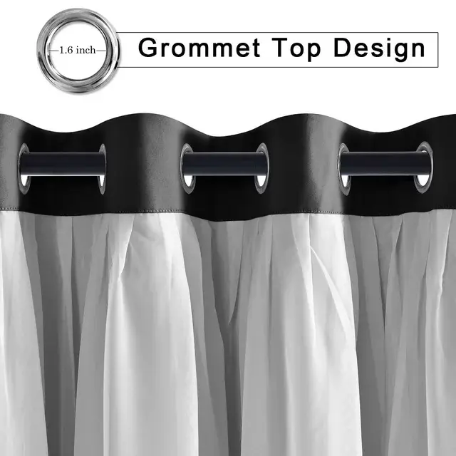 PREMIUM MATERIAL: Hiasan mix & match blackout curtains with white sheer overlay are crafted with high quality fabric. Great soft and durable curtains are idea for home decor. Each package includes 2 double-layered panels measuring 38"W by 84"L inch.Each panel has 8 silver Grommets (1.6" inner diameter). These light blocking curtains are in combined design, so it is easy to hang and slide on one curtain rod