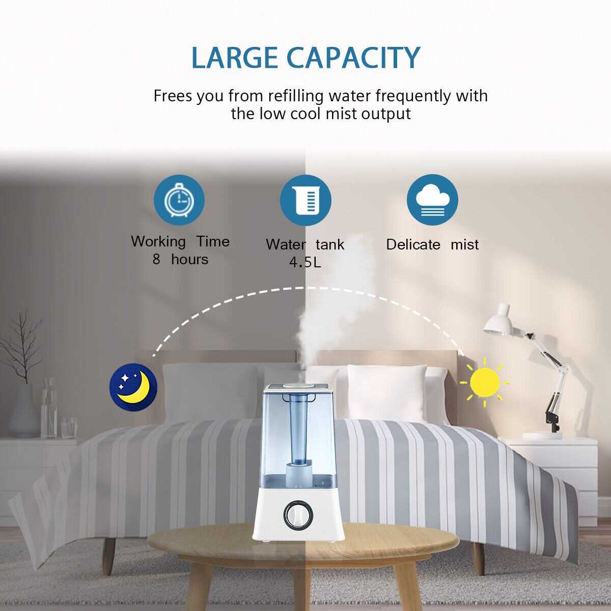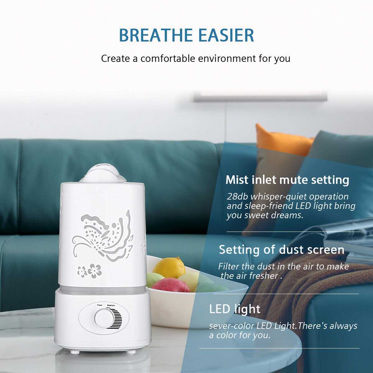 Hodiax Quiet Ultrasonic Humidifier 2-in-1 Diffuser Cool Mist Maker Whole House