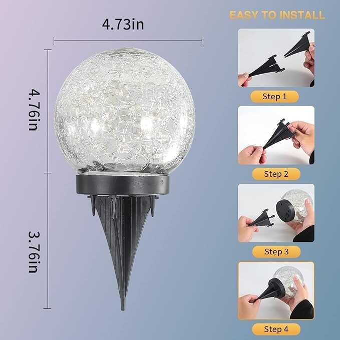 • 【Unique Crack Design】 Led Lights That Use Solar Technology And Environmental Protection And Energy -Saving. The Sphere Is Made Of Solid And Thick Glass. It Has A Clear And Realistic Crack Effect. The Crack Glass Sphere Emits Warm Lights.
