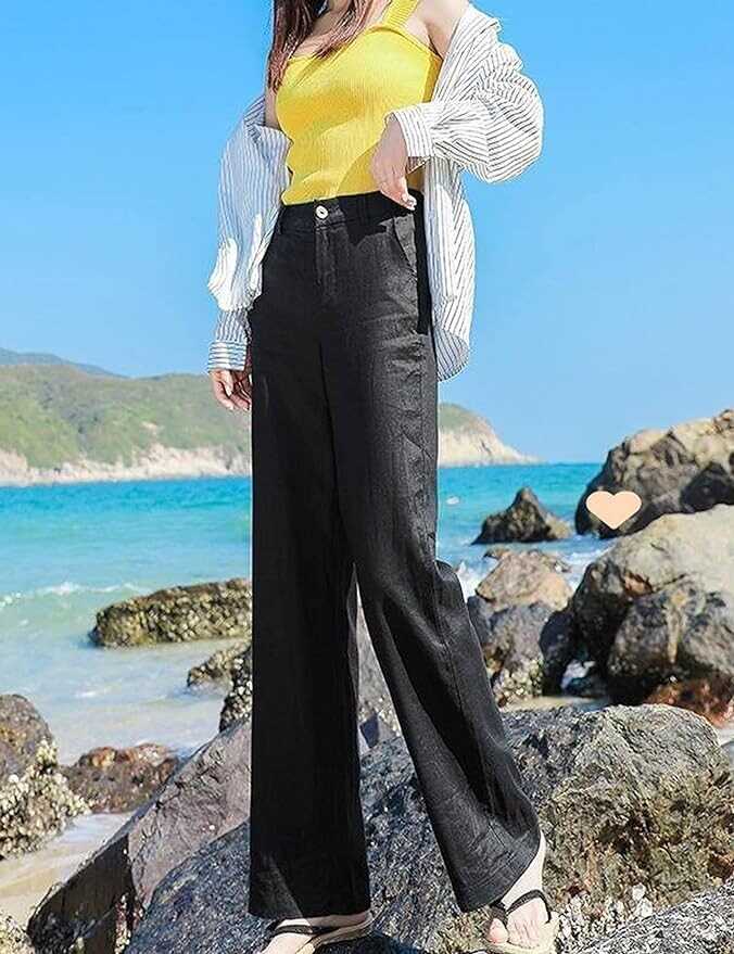Flowy pant for the summer, fashion traveling pants, white pants women high waisted, high waisted dress pants for women, fashion comfy solid high waist long pants, beach button down pants