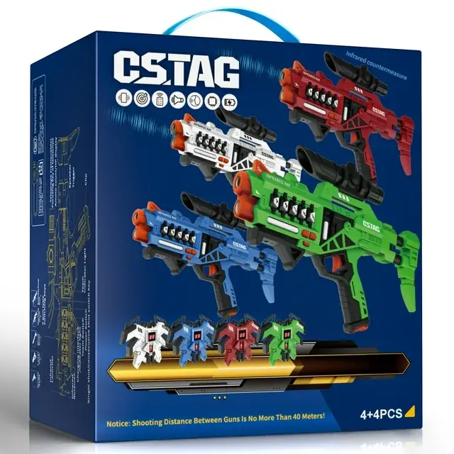 • LONG-DISTANCE GAME:These infrared laser tag blasters have an impressive 150-foot range and are fun to play with both indoors and outdoors