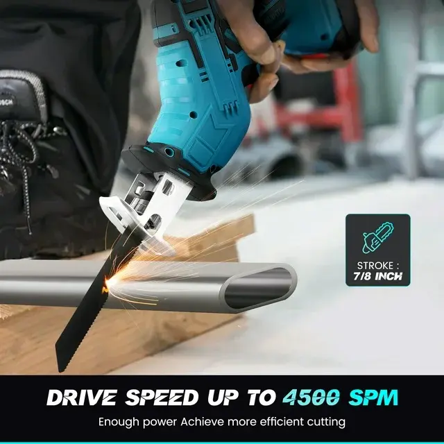 The unique metal auto-locking chuck design allows users to quickly change the saw blade without using additional tools.7/8 inch (22 mm) stroke length enables efficient cutting, allowing you to perform conventional cutting, plunge cutting and flat cutting.