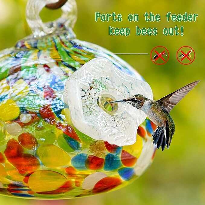 • Attract more hummingbirds: The bright color and style of the glass ball make the hummingbird feeder more attractive for hummingbirds,