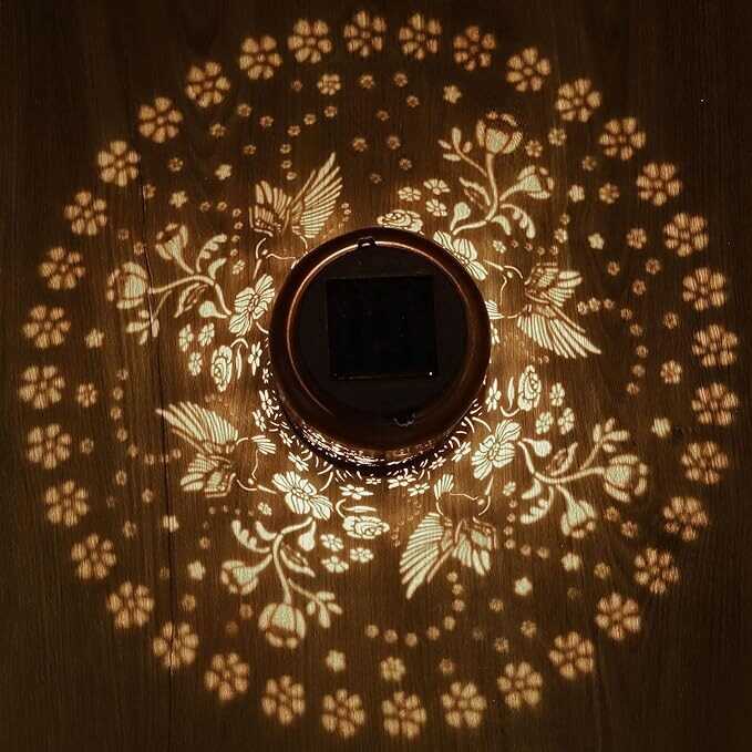 • Graceful Decorative Design:The retro appearance, with gold copper color and hollow out metal veneer, the solar outdoor lanterns casts bright and warm light in darkness, accompanied by gorgeous and graceful hummingbird patterns, adding a beautiful atmosphere to the surrounding environment.