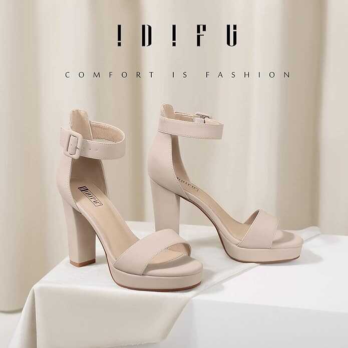 IDIFU Women's IN4 Sabrina Platform Chunky High Heels Ankle Strap Heeled Sandals Wedding Party Dress Shoes