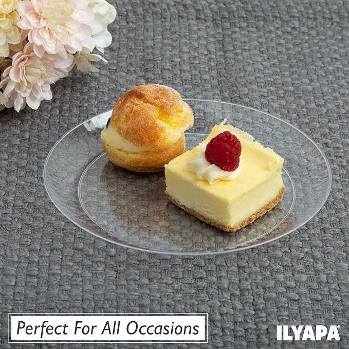 DURABLE AND ELEGANT - Ilyapa's premium and crystal clear plastic plates 6 inch have a solid, quality feel, and stand up to the needs of your party or gathering. The best part is, once your event is over, there are no dishes to do! Simply wash and reuse these 6 inch clear plates, or dispose of them!