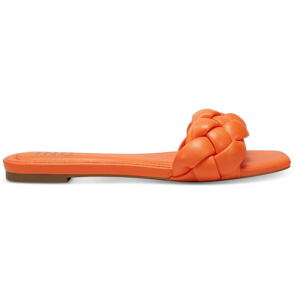INC Womens Partee Faux Leather Slip On Braided Slide Sandals Shoes BHFO 0292