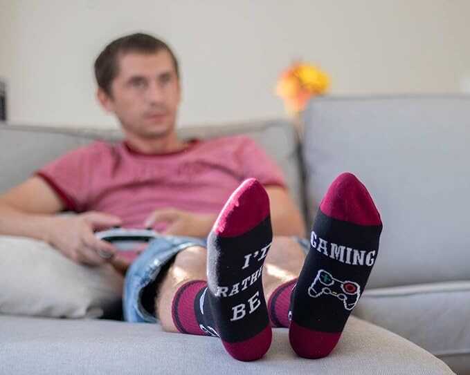 ★【 PERFECT GIFT FOR GAMER 】We interrupt your game to bring you our unique collection of fun gifts for gamer! If you are looking to treat that special someone in your life who loves playing games then look no further they will love these. Gamers will love wearing these funky socks at work, school, or playing video game. They're an easy Father's Day gift idea for dads, and a fun gift at Christmas and brithday for your sons, brothers and friends or or anyone who would rather be gaming.