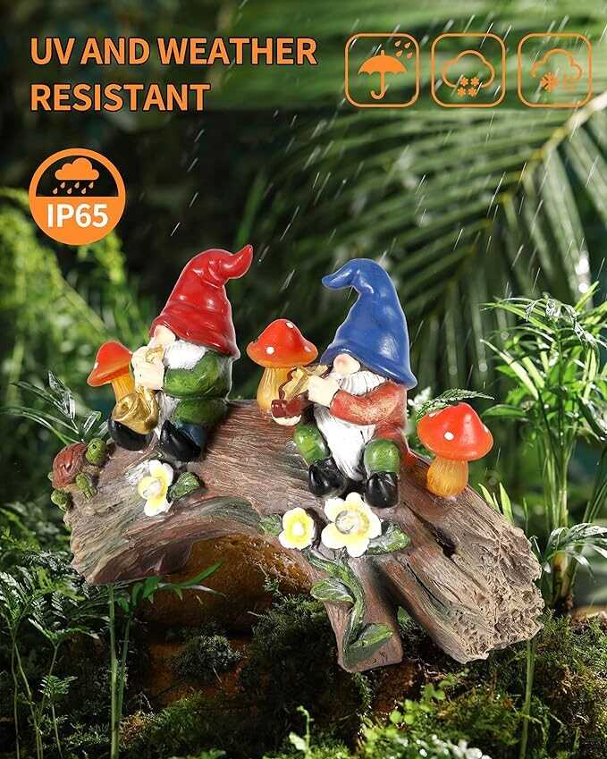 • ☀️Solar Powered Magical Glow - As darkness envelops the garden, the gnomes’ instruments emit a soft, enchanting glow. Imagine the melodies echoing through the moonlit night!