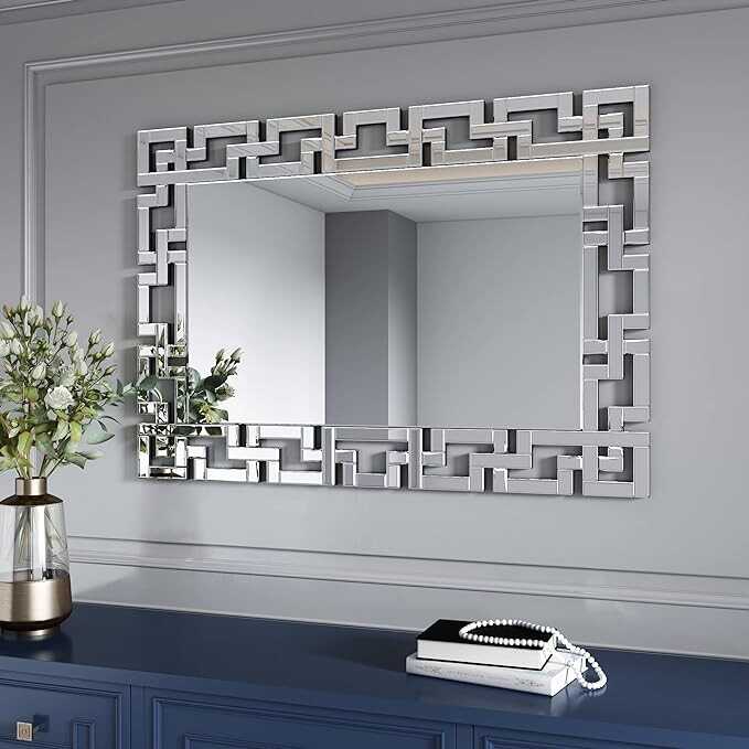 • GREEK KEY WALL MIRRORS DECORATIVE: It is a effective way to add pizzazz and sparkle to rooms. This wall-mounted mirror is suitable to hang over the mantel/ washbasin/ bedroom/ home/ hotel