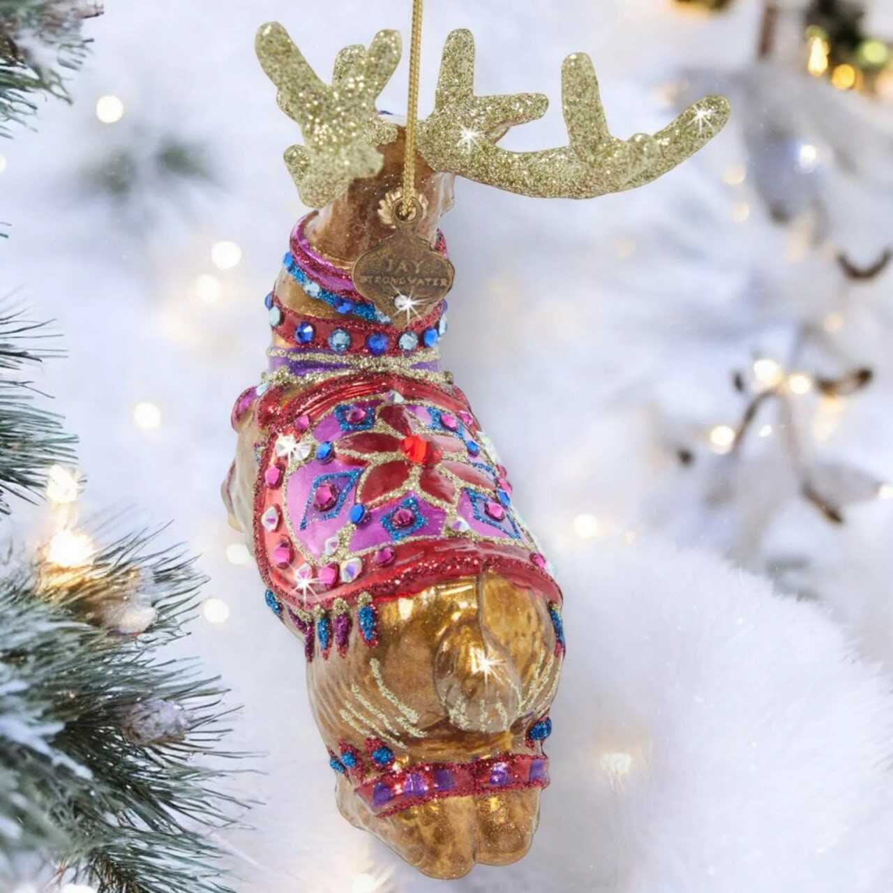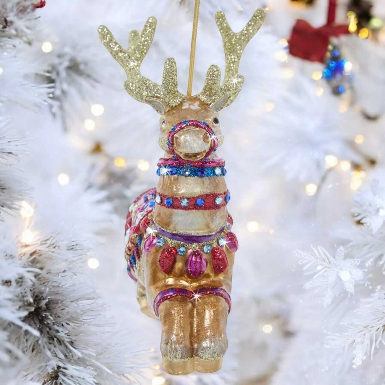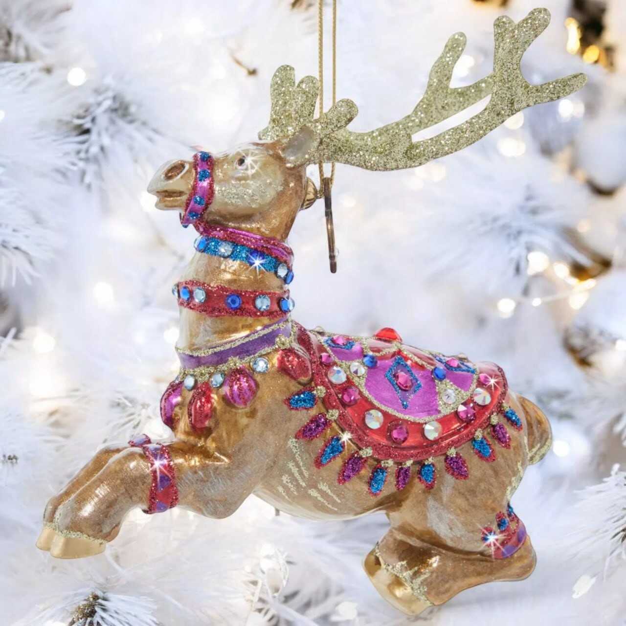 Jay Strongwater Leader Pack Glass Ornament SDH20075-250 Christmas reindeer