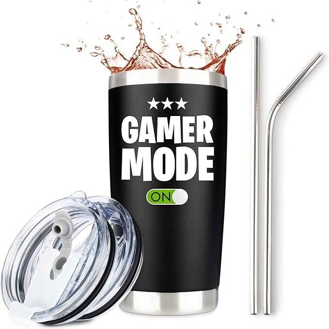 JENVIO Gamer | Stainless Steel Tumbler Including 2 Lids and 2 Straws and Gift Box | Idea Gamer Cup For Valentines Day | Video Gamer Mug Boys Valentine's Day Gift (20 Ounce Black)