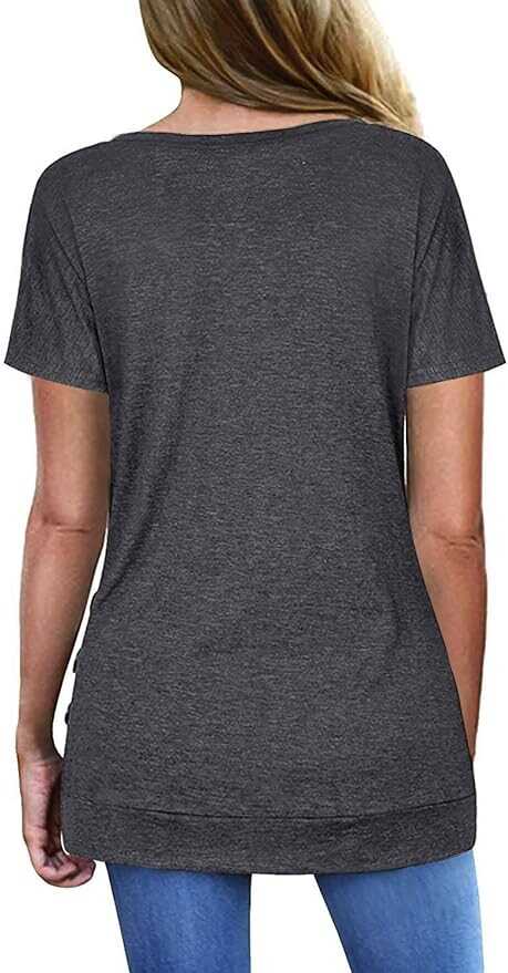 • Feature:Deep V neck,Short sleeve,Button Decor design with ruffled up sides,Solid color with stretchy fabric.