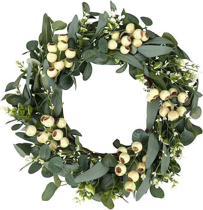 • 【Durable】The spring wreath is handmade of high-quality materials.The green eucalyptus leaves are silk and never fall,the big berries are foam and never rot.Do not need water and special cleaning.Can be used for all seasons.