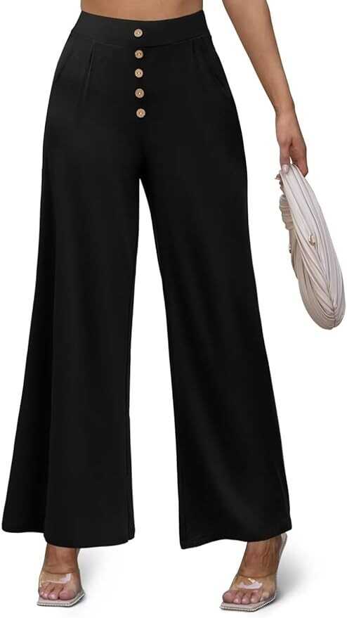 • Women Flowy Pants Designs: high waisted in chic v crossover / button decoration elastic waist design, the fabric is super soft, kind of like pajama pants,fashionable but also comfortable enough to wear around the house all day long. Fashion classic design shows the leg curve tall and straight. while deep side pockets give you somewhere to keep a hankie or cellphone.