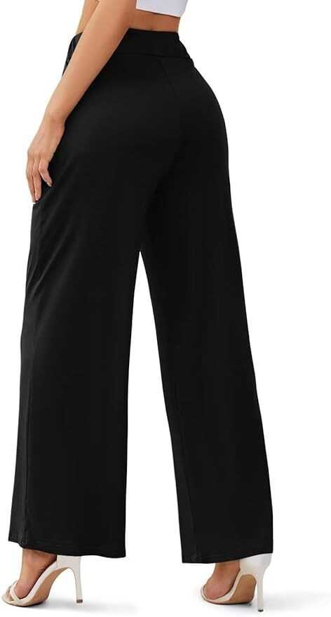 • Womens Wide Leg Pants Material: 95% Polyester 5% Spandex. Thin and lightweight. Casual Wide Leg Pants are ideal for spring, summer, fall and winter.