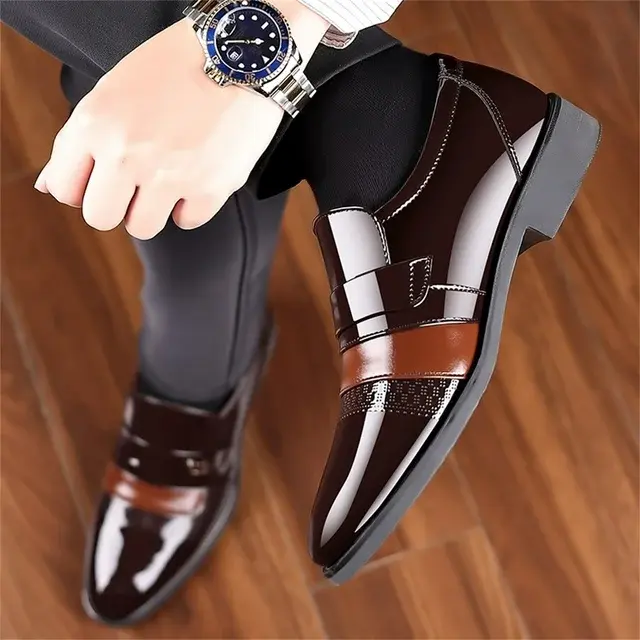 Fashion Summer And Autumn Men Leather Shoes Low Heeled Pointed Toe Slip On Business Shoes Men Casual Leather Fashion