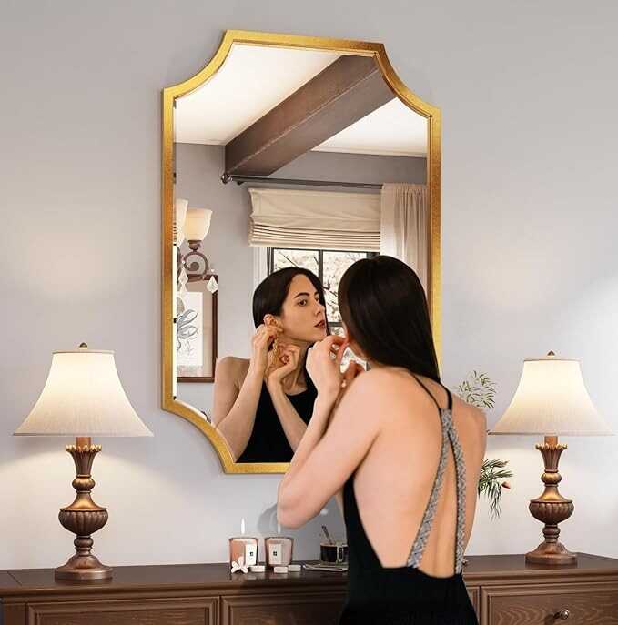 • SOPHISTICATED DESIGN: The mirror frame features an elegant scalloped corner shape. It's a traditional mirror style, but it also gives the mirror a simple and modern look, and it can be placed over a cabinet or fireplace or hung in your bathroom, living room, dinning room, or kitchen.