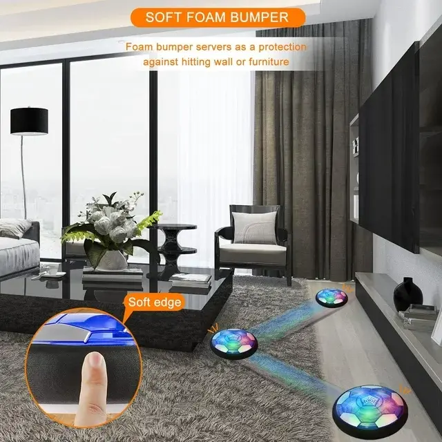 • ⚽?【Safety Soft Padded Bumper】: Hover football has foam edge, flexible, safe and not hurt foot. Be enough safe and nice so that kids won't hurt themselves or damage the walls or furniture and creates good rebounds for hours of fun. Develop sports skills, collaborative games, and social skills, provide time for enjoyment and exercise for ages 3-12.